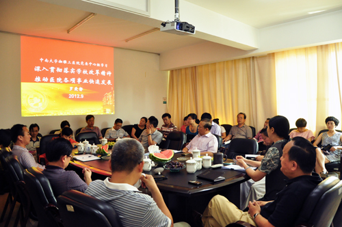 9月5日下午,湘雅三医院举行党委中心组(扩大)会议,会议主题为“深入贯彻落实学校改革精神,推动医院各项事业快速发展”。这是该院在推出贯彻落实学校改革精神的五大思路后,再次组织党委中心组成员、中层干部和全体职工展开讨论,深入贯彻落实改革精神。