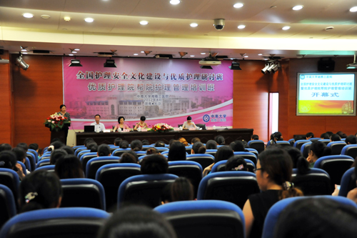 湖南省卫生厅联合工委主任孙向明、湖南省卫生厅医政处副处长曾清、中南大学医院管理处副处长姜新雅、湘雅三医院党委书记罗爱静、湘雅三医院党委副书记邓云龙等领导和专家出席开幕式。医院党委书记罗爱静开幕致辞。她强调了护理安全及加强护理安全管理的必要性,并希望通过此次学习班,全国各地的管理者能够相互学习,共同探讨,促进安全管理的水平和效果。
