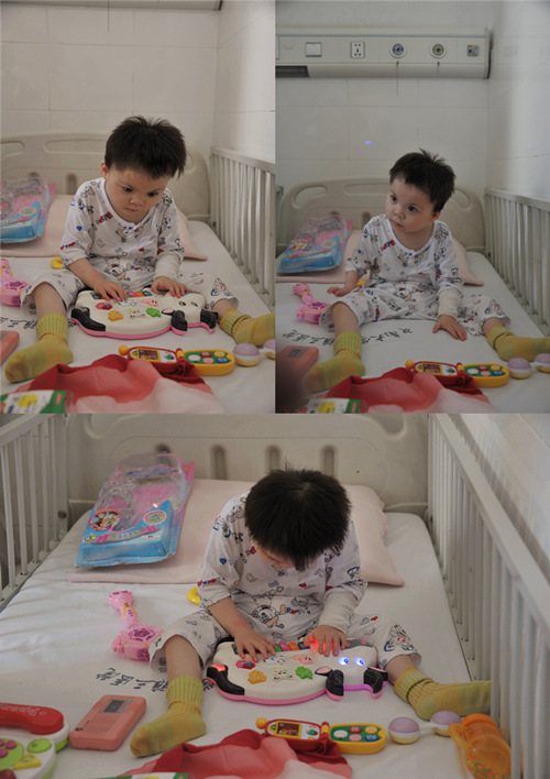 在孩子接受手术的前一天,内科党支部组织各党小组长提着大包小包的零食、牛奶、营养米粉和衣服、玩具来到了钰清的病床前,探望这位可怜的孩子。孩子格外高兴,用她特有的方式感谢着大家对他的关心。
