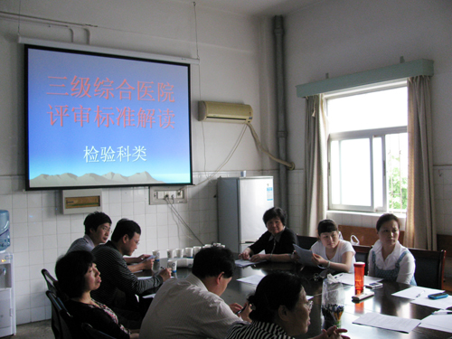 为进一步加强及配合医院三级综合医院评审工作,6月6日下午,检验科举行针对三级综合医院评审标准(2012年版)解读的会议。检验科主任伍勇教授组织本科质量控制小组成员一起学习并探讨该评审标准实施细则。