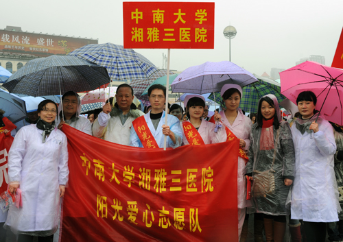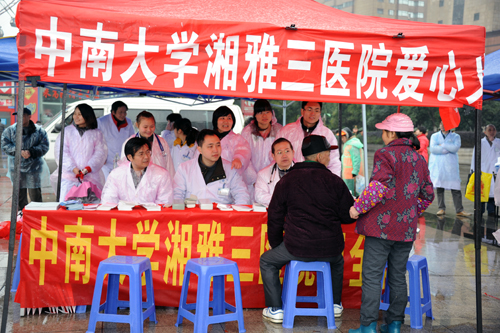 3月3日上午,“雷锋精神,热血传承”2012长沙市学雷锋无偿献血宣传活动年启动仪式在贺龙体育馆东门举行。来自商界、医疗机构、高等院校等社会各界的2000余名无偿献血志愿者列成方队,倡导发扬“献血助人、奉献爱心”的时代精神。湘雅三医院也组织了百名医护人员组成了献血志愿者方阵。