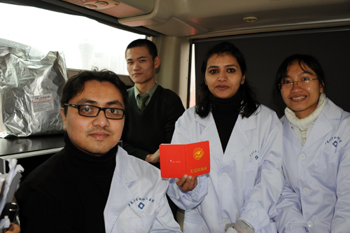 “我们与中国人民血脉相连”。在中南大学湘雅三医院百名医护人员献血队伍中,有3名外籍留学生,他们的到来引起了多家媒体的关注,他们是苏尼儿,湘雅三医院普外科研究生,尼泊尔人,30岁,有过献血经历,来中国四年;曼珠,苏尼儿的爱人,28岁,以前就读武汉大学,现就读湘雅三医院心内科研究生,来中国四年。库素配,柬埔寨人,女,26岁,心内科研究生。