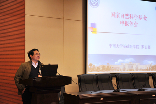 接下来,罗自强院长通过介绍2011年医学部项目申请情况并结合自身评审体会为大家做了精彩的讲座。他表示,以个人评审体会来说,最重要的是注意以下几点——1,严格按照指南投学科;2,决不可弄虚作假;3,创新是根本;4,不可抄袭过去已中标标书;5,工作基础很重要(已发表论文和上个项目完成情况)。他还结合具体案例从选题、立项、研究方法和技术路线、研究基础和研究条件等方面具体阐述了标书的写作方法和要点,让大家紧扣“创新”这一主题,提高标书的成功率。