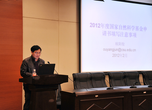 随后,欧阳俊老师以“2012年度国家自然科学基金申请书填写注意事项”为题,分别就2012年新变化、必须关注的小事、申请书填写要求及注意事项、初筛原因统计分析、2012年限项规定解读及其他问题向大家做了解读,呼吁大家注重规范、重视细节。