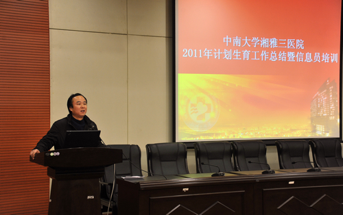 1月11日下午,医院在外科楼二楼国际学术报告厅室举行了2011年度计生工作总结暨计划生育信息员培训会。会上对2011年计生工作进行了总结,提出了2012年工作计划,并邀请了银盆岭街道计生办主任蒋钰授课。院领导邓云龙、各支部书记、科室计划生育信息员参会。