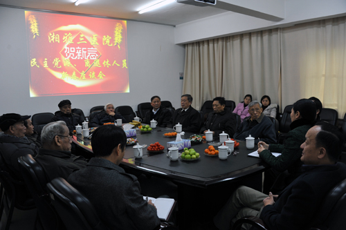 1月12日,湘雅三医院离退休人员、民主党派人代表新春座谈会在综合楼一会议室举行,院领导罗爱静、陈方平、吴希林、邓云龙与李俊儒、史毓阶、杨伯勋等离退休老领导、老专家以及民主党派代表欢聚一堂,共话医院发展。会议由党委副书记邓云龙主持。