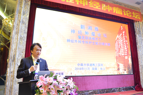 2018年11月2日-3日,由中南大学湘雅三医院神经外科主办的“新湘雅神经肿瘤论坛”在长沙召开。本次学术论坛以“新湘雅 新征程”为主题,致力于为全国神经外科同仁提供一个神经外科“新技术、新模式、新思维”的交流平台。