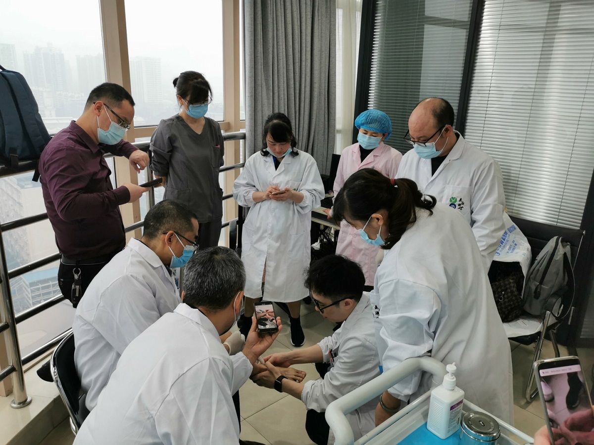 课后,曹旭和成湘红在骨科治疗中心为各位学员进行“一对一”的实操授课。