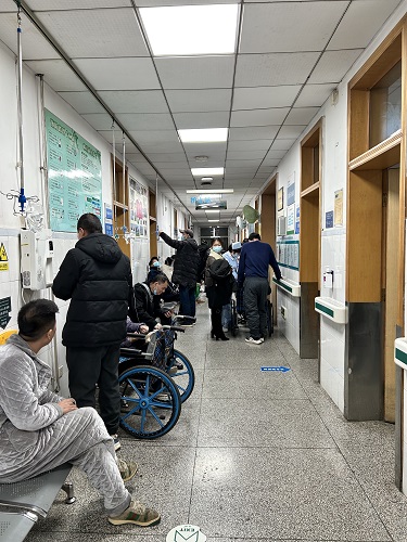 急诊留观室内,仿佛一切都被按下了“快进键”。从大年初一开始,200,300,400……随着就诊数量的激增,急诊留观室医护人员的工作量也呈指数增长,最高峰时35个床位的病房收治病人达70多个。有限的空间里全部满员,监护仪的滴答声与医护人员急促的脚步声交织在一起,奏响了紧张的生命守护乐章。从日落西沉到黎明破晓,从朝阳微露到暮夜星光,医护人员的脚步从未停歇……